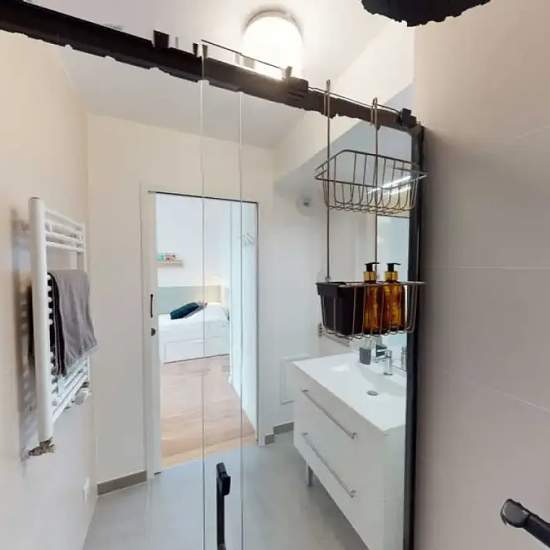 This lovely private bedroom in a fully equipped, furnished and all-inclusive flatshare in Saint-Ouen is a mix of comfort and design. It has got household furnishings, including a bed with pillows and duvet What is missing is your things to feel at home! The room can be locked if you need intimacy. The flatshare can be found in the Saint Ouen neighborhood, in the heart of Saint-Ouen. Plenty of shops, public transports, restaurants are accessible close by. The apartment is on floor 4 with lift. It is entirely equipped and is composed of a larg...