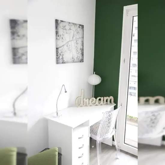 Large room of 16m², fully furnished. It has a double bed (140x190) and a bedside table with lamp. A working area is included, composed of a desk with chair and lamp. The room also offers several storage spaces: a wardrobe with hanging space, a chest of drawers and a shelf. The main feature of this room is the sitting area composed of an armchair and a television and access to the terrace. Located in the Esplanade district, this 90m² flat is ideally situated a few steps from the University of Strasbourg and close to all amenities. The flat is...