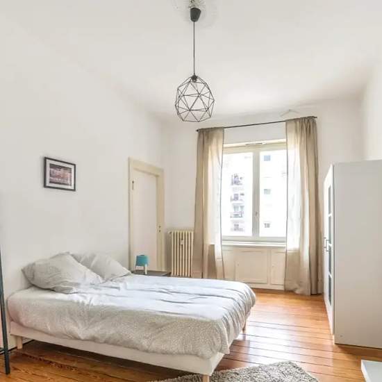 Very large room of 19m², fully furnished. It has a double bed (140x190) and a bedside table with lamp. A working area is included, composed of a desk with chair and lamp. The room also has storage space: a wardrobe with hanging space and a shelf. Located in the Kable district, this 133m² flat is ideally located, a few steps from the Parc du Contades and the République station and close to all amenities. The flat is on the 1st floor of a secure building with a bicycle locker. The flat is composed of 5 rooms, a kitchen, a bathroom and a separa...