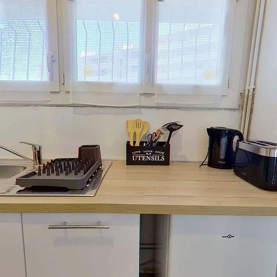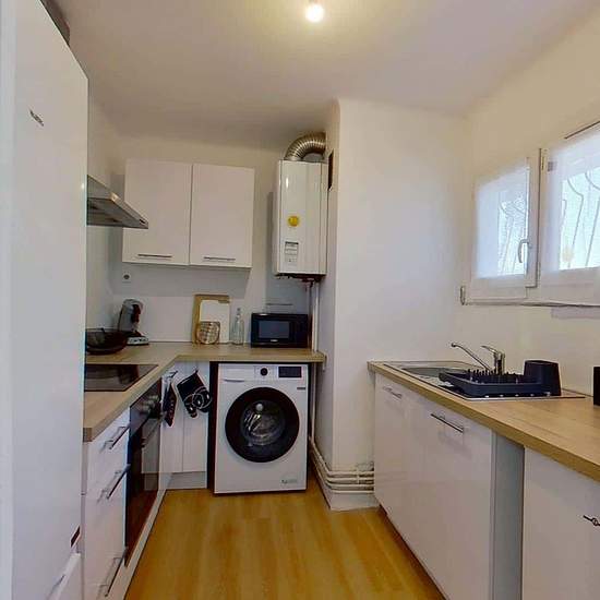 Oqoro vous présente cette colocation de 3 chambres de 67 m² au 88 Avenue Aristide Briand, Toulon. LES ESPACES COMMUNS La pièce de vie est meublée avec un canapé, une table basse, un meuble TV avec TV, une table à manger pouvant accueillir 4 personnes. Elle s'ouvre sur un balcon aménagé d'une table et de deux chaises. La cuisine séparée est équipée d'un four, d'un micro-ondes, de plaques de cuisson, d'une hotte, d'un évier, de deux réfrigérateurs avec compartiment congélateur, machine à laver, ainsi que de nombreux rangements et ustensiles d...