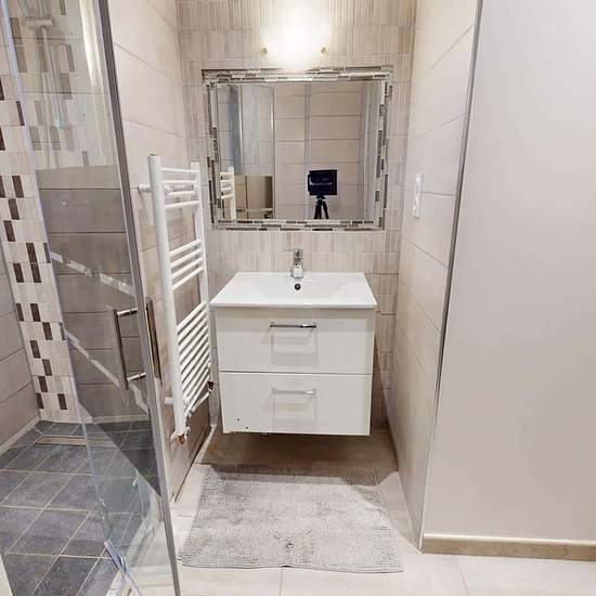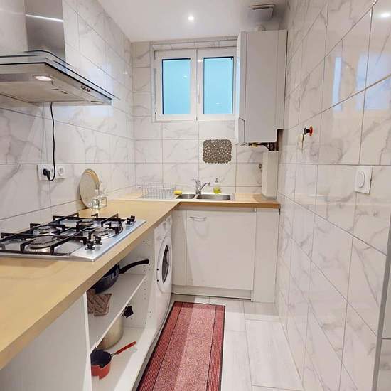 OQORO vous propose cette colocation de 80 m², située dans la commune de Vénissieux au 78 Rue Président Salvador Allende. APPARTEMENT Cette colocation de trois chambres s'ouvre sur une entrée avec un meuble à chaussures et un placard mural. Le séjour est aménagé d'une table avec trois chaises, un réfrigérateur, un BZ, un meuble de rangements ainsi que d'une télévision. La cuisine attenante est équipée d'un micro-ondes, une machine à café, un grille-pain, des plaques de cuisson avec une hotte, une machine à laver, un double évier ainsi que d...