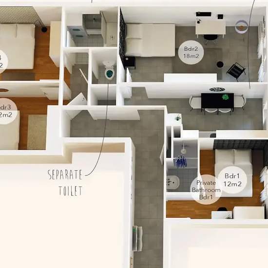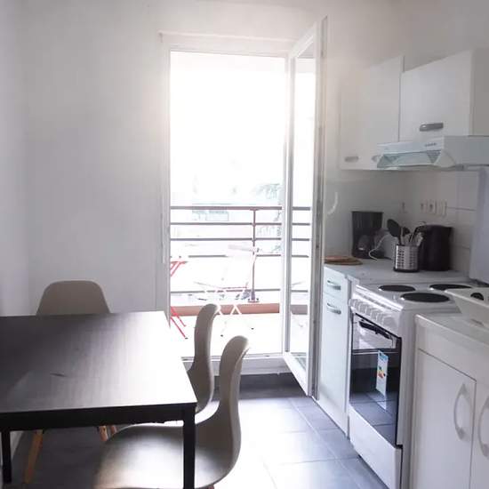 Room of 12m², fully furnished. It has a double bed (140x190) and a bedside table with lamp. A working area is included, composed of a desk with chair and lamp. The room also has storage space: a wardrobe with hanging space and a shelf. Located in the Beauvisage district, this 83m² apartment benefits from an ideal location, near the Parc Sergent Blandan and close to all amenities. The apartment is on the 2nd floor of a secure building. The apartment is composed of 4 bedrooms, a kitchen, a bathroom and a separate toilet. All rooms are fully eq...