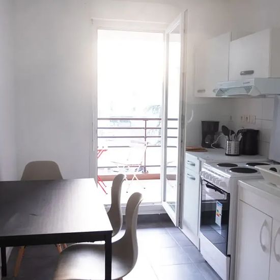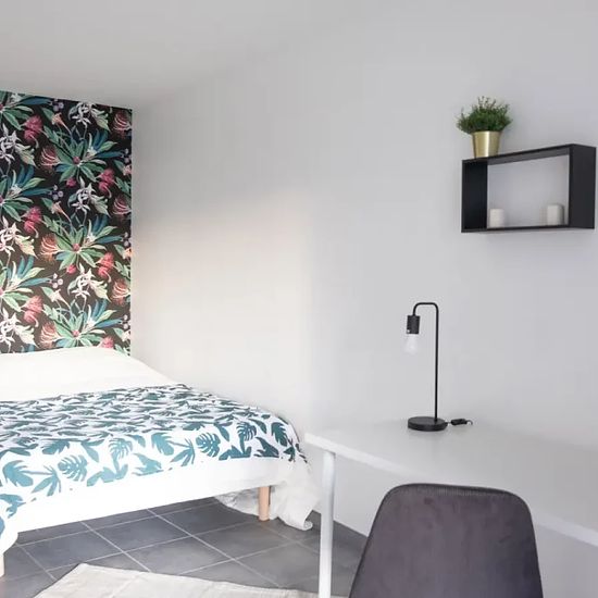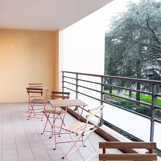 Very large room of 18m², fully furnished. It has a double bed (140x190) and a bedside table with lamp. A working area is included, composed of a desk with chair and lamp. The room also offers several storage spaces: a wardrobe with hanging space and a shelf. The main features of this room are the sitting area with armchair and coffee table and access to the balcony. Located in the Beauvisage district, this 83m² apartment benefits from an ideal location, near the Parc Sergent Blandan and close to all amenities. The apartment is on the 2nd flo...