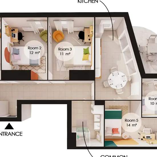We offer you a 14 m² bedroom which is just waiting for you! Rented fully equipped, this comfortable bedroom is located in a beautiful 91 m² flat in Villeurbanne, near Lyon. It is in a prime location, only 5 minutes from the metro line A and less than 10 minutes from supermarkets, parks, gyms, etc. It is decorated in brown and dark blue colours, which are also used to delimit the spaces, and includes a sleeping area and a working area, as well as a large wardrobe to store all your belongings. In coliving, you won't have to worry about utiliti...