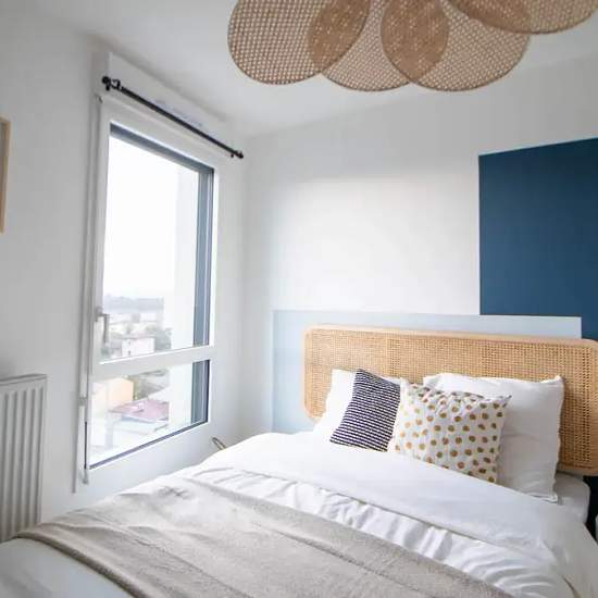 Discover this pleasant 10 m² bedroom. It is located in a large flat in Villeurbanne, on the top floor of a modern residence, at the foot of the metro line A and close to local shops. Its blue and grey colors will match any style and universe. It has a sleeping area and a working area, both equipped. When you choose to use coliving, you are choosing peace of mind. You won't have to worry about additional costs and charges. Internet and home insurance are included in the total amount of your rent. We also take a deposit on charges for water, h...
