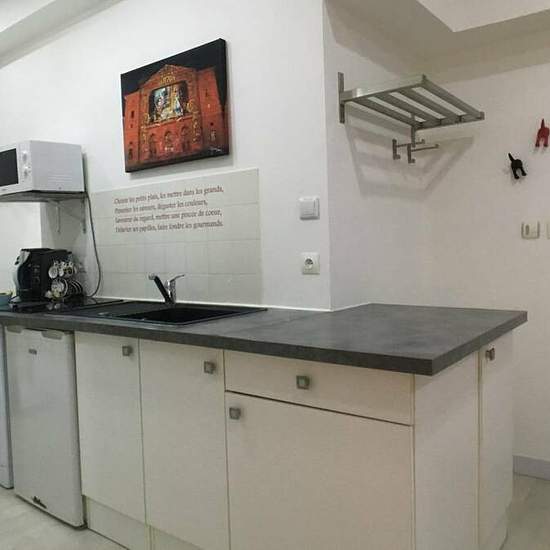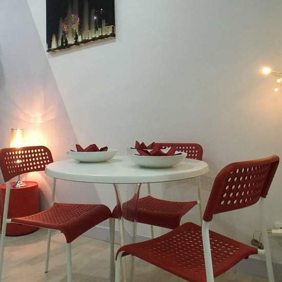 A charming studio apartment with a gorgeous terrace is available to rent near the Metro in Croix-Rousse. The apartment has a cozy main room, where you'll find a modern set of bunk beds, a small dining table, and a TV. The kitchen has all the basics, including an electric stove, a microwave, and a washing machine. The bathroom is also contemporary, with a sizable shower, a heated towel rack, and an independent toilet. You'll be living in Croix-Rousse, Lyon's central and well-connected 1st arrondissement. The apartment is a 3-minute walk from...