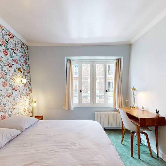 The House // With a total surface area of 350m2, it includes fourteen (14) private units and common areas served by stairs on three (3) floors. Communs // Accessible to all tenants and fully furnished, the Communs include: a basement with a laundry room with washing machine and dryer. First floor: a reading and entertainment room. A living space with an open kitchen and a lounge. Exterior: A terrace behind the house with outdoor furniture.