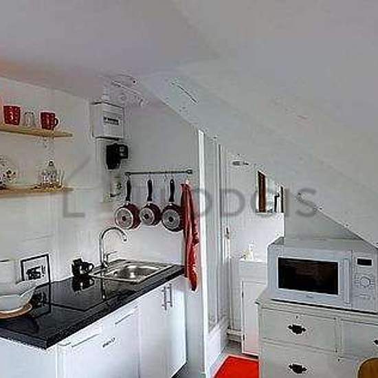 This furnished 17 m² apartment is located on Rue Lemercier, in a working class section of Paris 17th district. This charming furnished studio rental can accommodate up to 1 person. This very bright and very peaceful apartment is located on the 7 floor (no lift). It is also equiped with all you need just like at home including Vacuum cleaner, Iron, table linens, dish towels, armored door, etc. The apartment is accessible by Paris public transportation (La Fourche/M 13), and nearby you can find many businesses and services (like a Butcher/Deli...