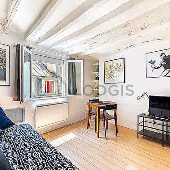 This furnished 19 m² apartment is located on Rue Rambuteau, in a animated section of the 4th district of Paris. This charming furnished studio rental can accommodate up to 2 people. This very bright and very peaceful apartment is located on the 4th floor - FR standard (no lift). It is also equipped with all you need to feel like a local including Internet included, etc. The apartment is accessible by public transportation (Rambuteau/M 11), and nearby you can find many businesses and services (like a Butcher/Delicatessen, Bakery, Bar, grocery...