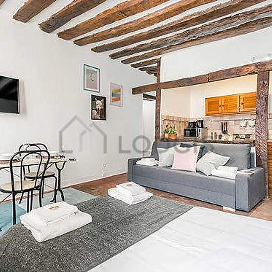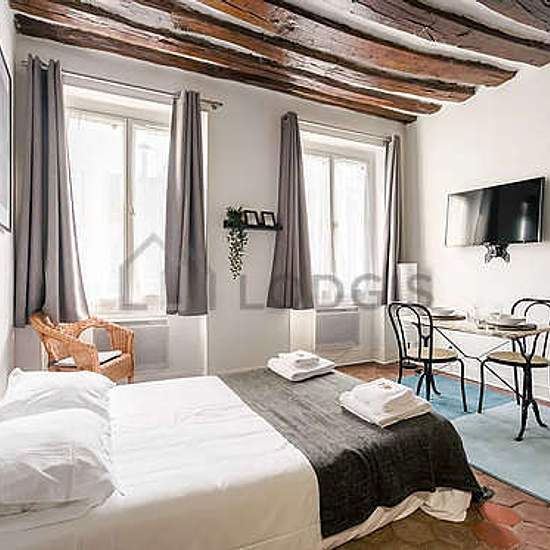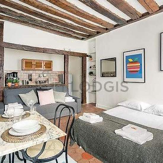 This furnished 30 m² apartment is located on Rue Des Rosiers, in a prestigious section of the 4th district of Paris. This large furnished studio rental can accommodate up to 4 people. This apartment is located on the 2nd floor - FR standard (no lift). It is also equipped with all you need just like at home including Internet included, Vacuum cleaner, etc. The apartment is accessible by public transportation (Saint-Paul - Le Marais/M 1), and nearby you can find many businesses and services (like a Bakery, Bar, Park, pharmacy, Restaurant, Supe...