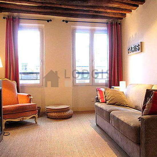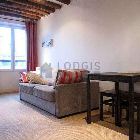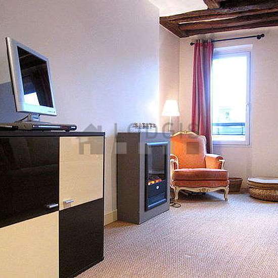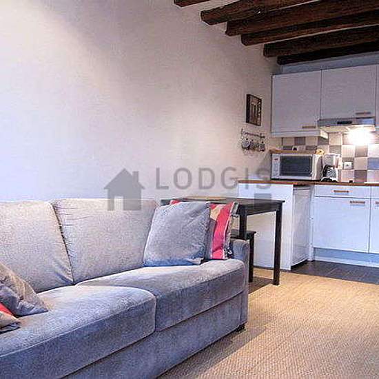 Landlord's comment: "This delighful and tastefully 21m² studio is situated in a very charming 17th century building in the trendy and convivial Marais quarter. Superbly located in the heart of Paris, it is within 10 minutes walking distance of the Place des Vosges, the Picasso Museum, the Carnavalet Museum, the Arts et Métiers Museum, the Pompidou Center, and the picturesque Rue de Bretagne with is famous Enfants Rouges market. South facing, with typical Marais style roof beams, the studio has a fully equipped kitchen corner. The main room i...