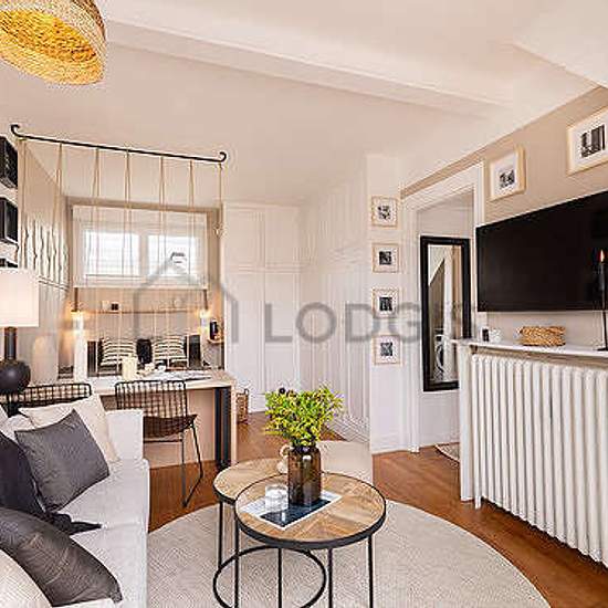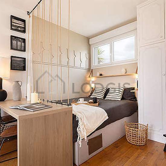 This furnished 35 m² apartment is located on Rue Jouvenet, section of the 16th district of Paris. This large furnished studio rental can accommodate up to 2 people. This apartment is located on the 7th floor - FR standard (elevator available). It is also equipped with all you need just like at home including Internet included, Iron, table linens, dish towels, etc. The apartment is accessible by public transportation, and nearby you can find many businesses and services (like a Butcher/Delicatessen, Bakery, Bar, Fitness center nearby, Newssta...