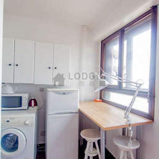 This furnished 33 m² apartment is located on Rue Stephenson, in a working class section of Paris 18th district. This large furnished studio rental can accommodate up to 2 people. This very bright and very peaceful apartment is located on the 6 floor (elevator available). It offers a clear view. It is also equiped with all you need just like at home including Vacuum cleaner, Iron, etc. The apartment is accessible by Paris public transportation (La Chapelle/M 2, RER B, RER D, RER E, SNCF NORD, Marx Dormoy/M 12), and nearby you can find many bu...