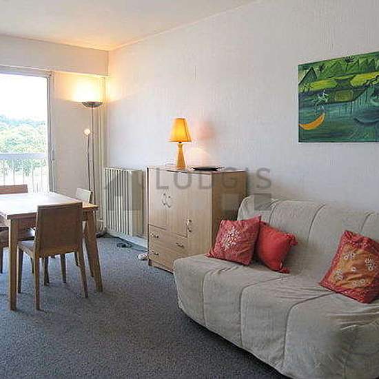 Landlord's comment: "This large (44m2) furnished alcove studio is located on the 10th floor of a recent building in rue de la Folie Regnault (Paris 11). It can accomodate up to 4 adults. An additional baby cot or a foldable mattress suitable for a child is available on demand. The flat is very bright, with large windows, and offers a stunning view on the trees of the Pere Lachaise hill. It is very well equipped, with wifi, a TV set, phone, washing machine, etc. The building is protected by codes and an entrance gate and has a janitor on site...