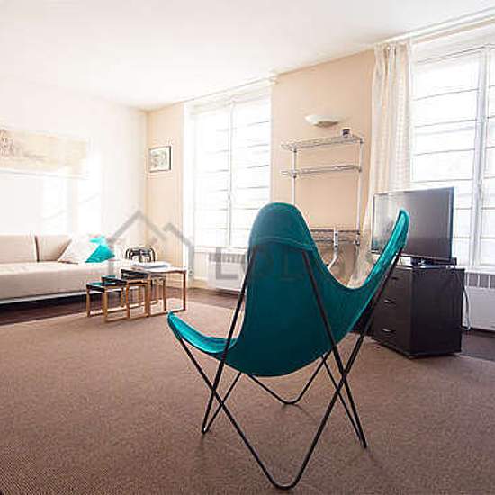 This furnished 36 m² apartment is located on Rue Blainville, in a animated section of Paris 5th district. This large furnished studio rental can accommodate up to 4 people. This bright and peaceful apartment is located on the 3 floor (no lift). It offers a clear view. It is also equipt with all you need to feel like a parisian including Air conditioning, Vacuum cleaner, Cable, Fireplace, Iron, Internet included, Washing machine, Linen, table linens, dish towels, etc. The apartment is accessible by Paris public transportation (Place Monge - J...