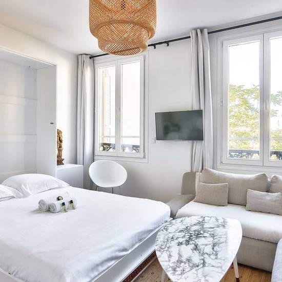 Studio with Eiffel Tower view and bright, ideal for your stay in Paris. This studio is perfect for 2 persons, willing to have an authentic French experience. The apartment is ideally situated in elegant 9th arr. which is known for its theaters. This apartment is tastefully decorated and has the authentic french charm for you to feel closer to the French culture and way of life. The space Welcome to my home! This cozy studio 24m2 with Eiffel Tower view, is composed of a kitchenette equipped with a stove, fridge, microwave, coffee machine, t...