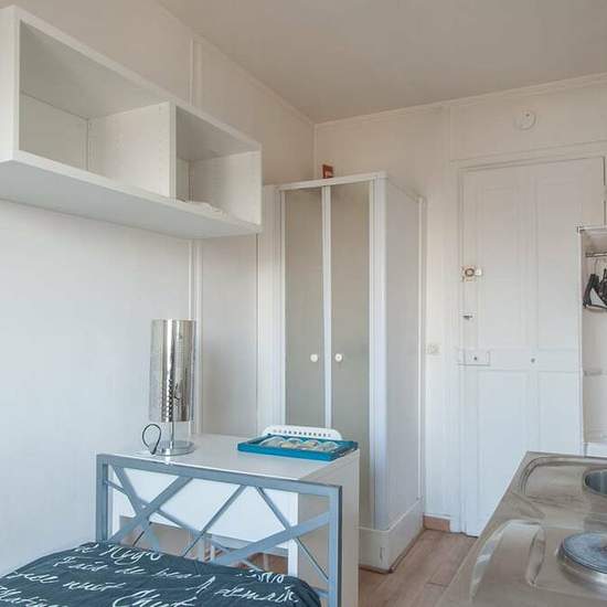 A cosy, 10 m² studio apartment is available to rent in Paris's 6th arrondissement. This property is compact, but it is is designed in a comfortable layout and has high ceilings. There is a partially equipped kitchen area, a sleeping space with a single bed, a desk, and a shower corner. The apartment has a large window which boasts spectacular views of Paris's skyline. This apartment is located on Rue Blaise Desgoffe in Paris's 6th arrondissement. The apartment is in a central location - famous landmarks such as the Luxembourg Gardens and th...