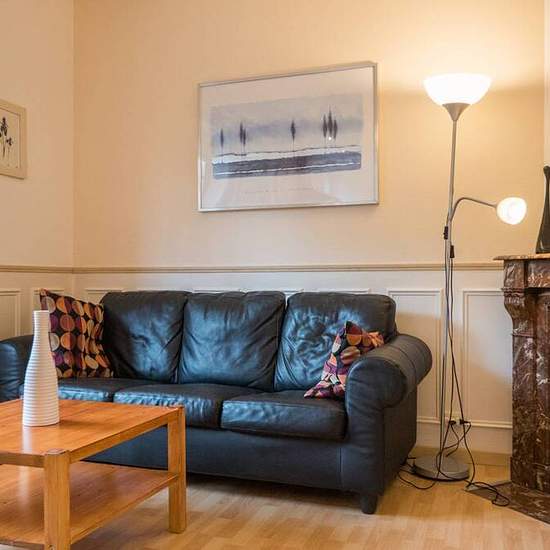 This spacious 1-bedroom apartment is available to rent on Place General Leclerc in upscale La Garenne-Colombes. This sunny pad has a large, beautifully decorated living room with a comfy sofa, fireplace, and office space. There's also an open-plan kitchen corner, complete with all mods-cons. There is a bright, large bedroom with a double bed, heater, decorative fireplace, and ample storage. There is also a shared decking/garden area outside where you can chill and enjoy a glass of French wine in the evening! You will be living in the peace...