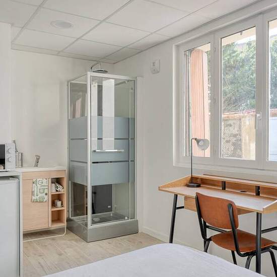 Located in the northeastern suburbs of Paris, this intimate building offers both privacy and community, making it the ideal location to unlock your next move with ease. In addition to your own studio, you’ll enjoy access to a shared living and dining area, as well as a spacious kitchen. On each floor, you’ll also find shared bathrooms and a kitchenette, making it easy to cook your favorite meals. And when you want to relax and unwind, just head out to the garden area or community terrace! Welcome to your stylish studio in Paris! This privat...