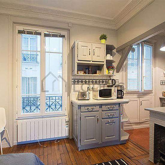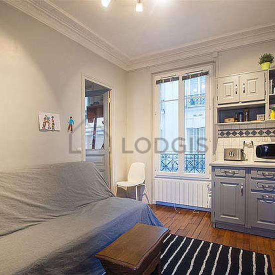 This furnished 35 m² apartment is located on Rue Dautancourt, in a working class section of the 17th district of Paris. Composed of 2 rooms, including 1 bedroom, this furnished apartment rental can accommodate up to 2 people. This very peaceful apartment is located on the 1st floor - FR standard (no lift). It is also equipped with all you need for a nice trip including Internet included, Iron, etc. The apartment is accessible by Paris public transportation (Guy Moquet/M 13), and nearby you can find many businesses and services (like a grocer...