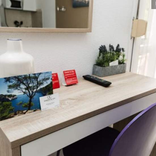 Studio de 19 m² minimum avec un lit queen size (160*200), coin cuisine équipée avec réfrigérateur, plaques de cuisson, hotte, micro-ondes, cafetière et bouilloire. Une salle d'eau avec douche et WC, un grand placard dans l'entrée et place de parking. Le linge de lit et de bain est fourni à l'arrivée. La résidence se situe au coeur d'un vignoble, à seulement 1 km du centre-ville de Puyricard et 10 Km du centre historique d'Aix en Provence et du Pôle d'Activités d'Aix les Milles.