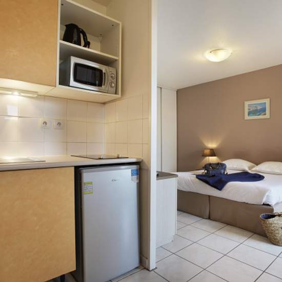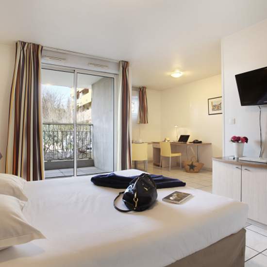 Fully equipped and furnished studio located at the gates of Aix-en-Provence. The city center is quickly accessible by bus to take advantage of the many restaurants, bars and stores of the Provencal city. The Arbois TGV train station is 20 minutes away by car and the Marseille Provence airport is 25 km away. In the case of a seasonal rental, in addition to the monthly rent, a visitor's tax of an amount that varies per night and per person will be payable directly to the residence. Services included in rent & charges: Water Electricity Inter...