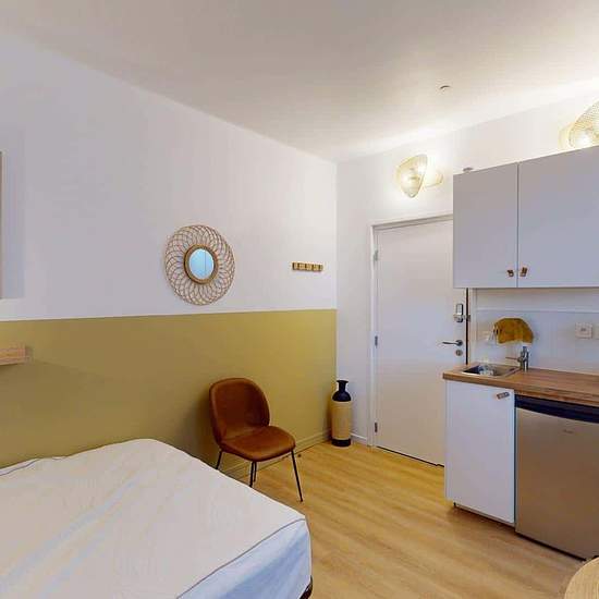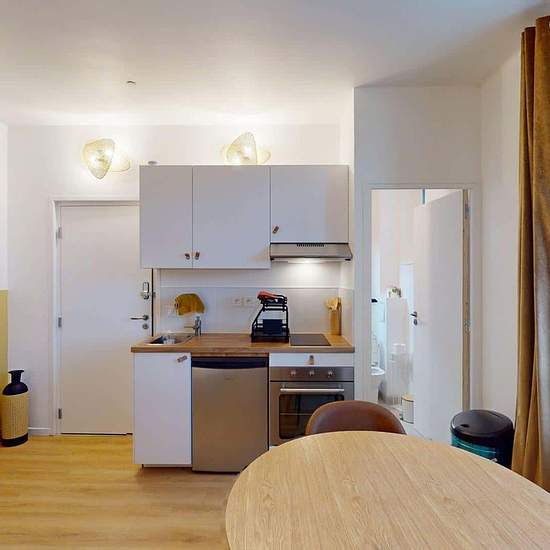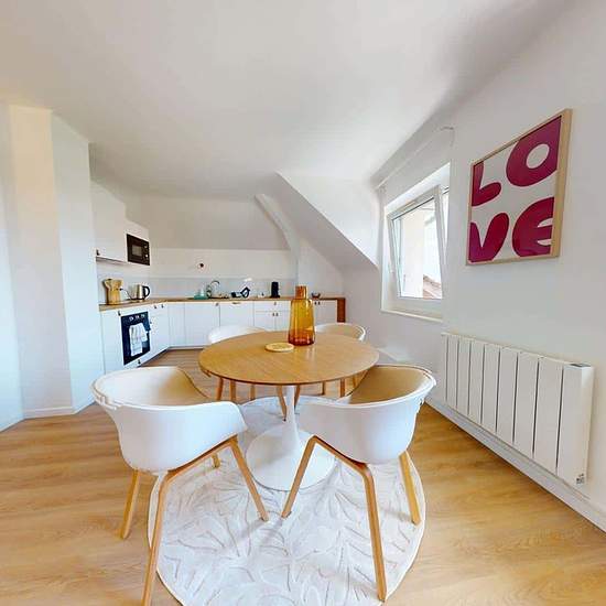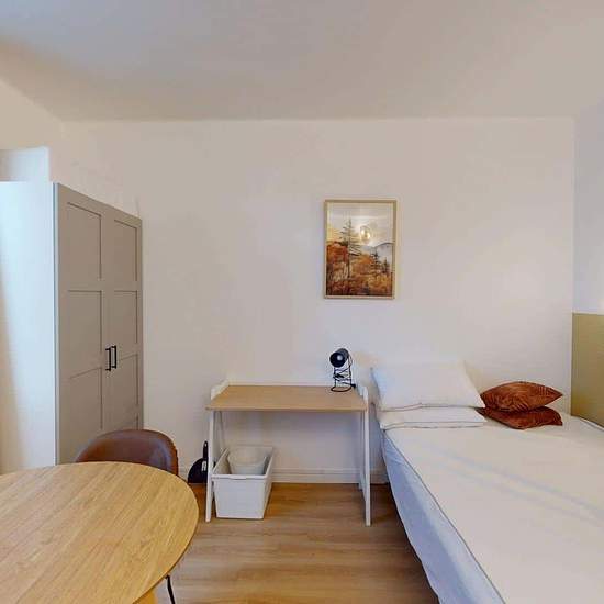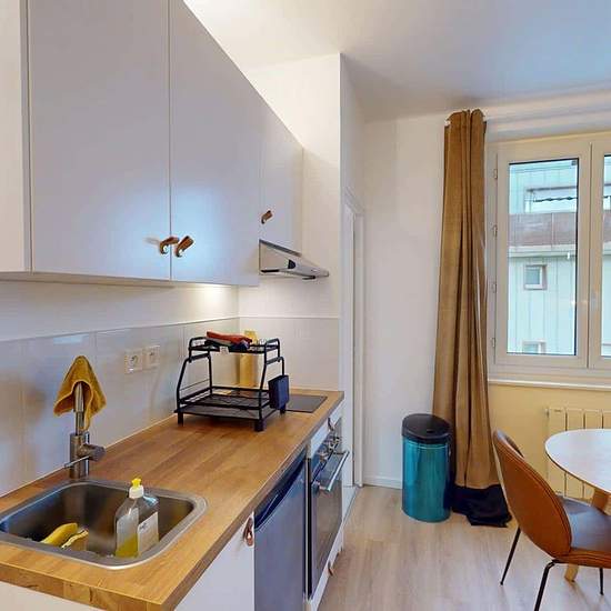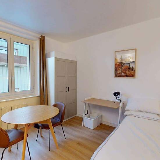 Oqoro presents this 18 m² studio at 19 rue Louis Armand, Ambilly, just a few steps from the Swiss border. THE ACCOMMODATION The living area is furnished with a double bed, a bedside table, a desk, a table for two, and a storage closet (with hanging rail and hangers). The kitchenette is equipped with an oven, hob, extractor hood, sink, refrigerator with freezer compartment, as well as plenty of storage and kitchen utensils. The shower room includes a shower, a vanity unit with mirror, a toilet, and storage. THE NEIGHBORHOOD For public transpo...