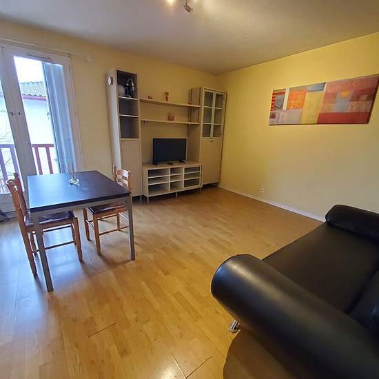 Appartement Anglet T1 Bis . idéalement situé rue Hausquette. Au troisième étage avec ascenseur, l'appartement est entièrement meublé (cuisine équipée, frigo, micro-ondes, rangements). Composé d'une pièce de séjour avec coin cuisine, une salle de bain avec WC. La chambre est en mezzanine et est équipée de placards. Le lot comprend un emplacement de parking extérieur. Les charges de 60 euros comprennent l'entretien des parties communes, l'eau et les ordures ménagères. Les plus : idéalement situé, logement fonctionnel, proximité commerces et tr...