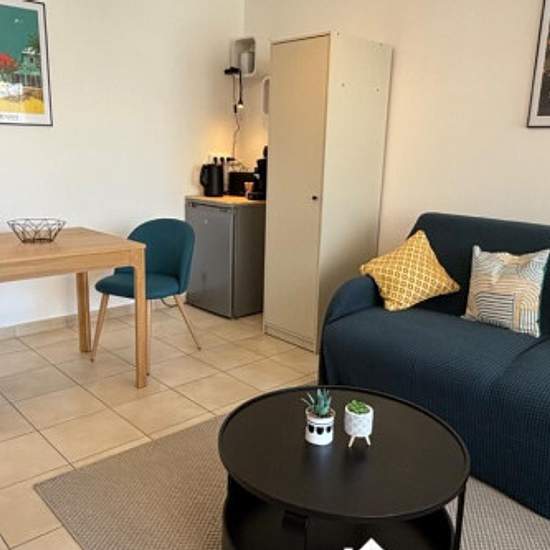 Au calme et à deux pas de l'arrêt de bus et gare des trains et commerces, beau studio rénové, entièrement équipé, climatisé de 28 m2 avec coin nuit et sa terrasse 9m2. Lit de 140, coin repas, salon, cuisine équipée, machine à laver, internet Updated on 07/12/2025 Mise à jour le 07/12/2025