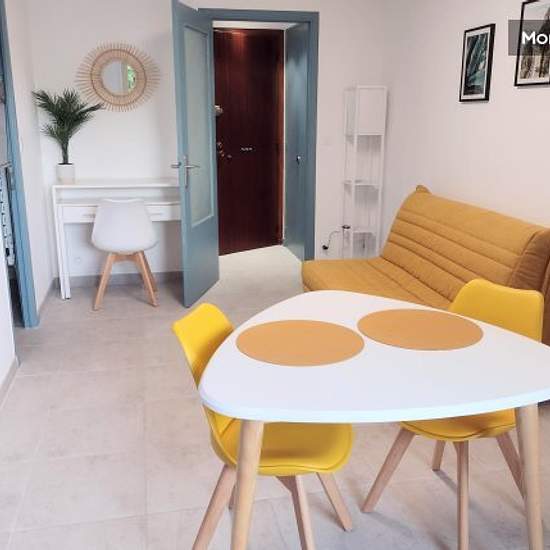 Lovely 25m² studio for rent furnished, completely refurbished, bright, not overlooked, west-facing with sea and Esterel views. The studio is well laid out. It is fully furnished and equipped: oven, hob, extractor fan, fridge, microwave, coffee machine, kettle, toaster, iron, hairdryer, washing machine, TV, wifi (fibre). It has communal heating. The windows are double-glazed for acoustic insulation. A car park is located opposite the studio. Parking is free from October to May. The studio is located in Juan-les-Pins in a pleasant neighbourhoo...