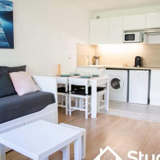 Appartement idéalement situé dans le centre de Juan les Pins, au calme. A quelques minutes à pied d'Antibes, des plages, des commerces et restaurants ... L'appartement est équipé d'une climatisation réversible, et se compose : • d'une pièce principale avec cuisine entièrement équipée (micro-ondes, four, grille-pain, réfrigérateur, plaques vitrocéramiques, bouilloire, cafetière). • d'un canapé réversible 140x200 • d'une TV • d'une chambre cabine avec lit mezzanine deux couchages, • d'une salle de bain avec lave-linge A pied de l'appartement :...