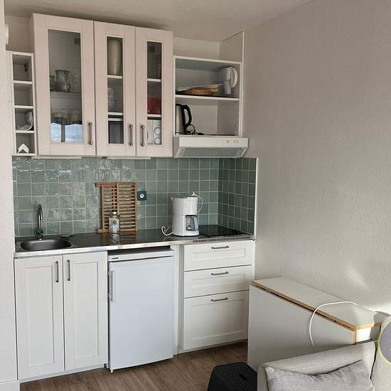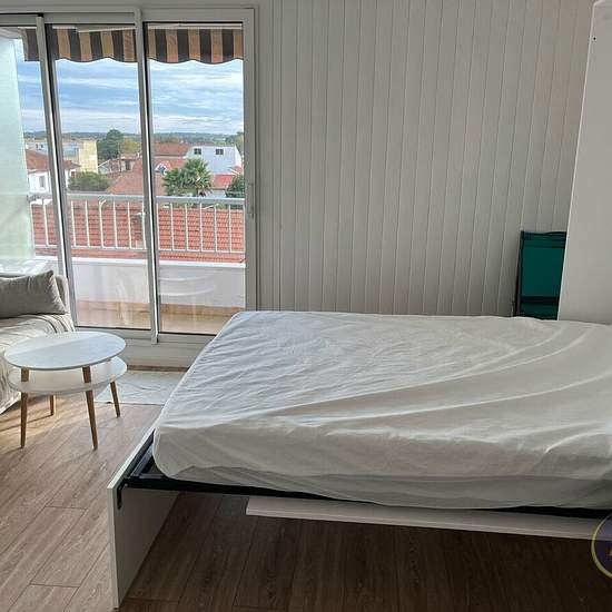 Cet appartement meublé entièrement refait de 24 m² se situe au 4ème étage avec ascenseur. Il se compose, d'une entrée cabine avec lit superposés, d'une salle d'eau avec wc et d'une pièce de vie avec un canapé, un lit escamotable et un placards / penderie, d'une kitchenette aménagée et équipée ainsi que d'un balcon de 4.5 m² exposé sud. Il dispose d'une place de parking privative sécurisée aérienne et d'une cave. Situé au coeur des commodités du quartier de l'aiguillon. Libre le 2 janvier 2026 loyer hors charges : 580 charges : 50 (charge d...