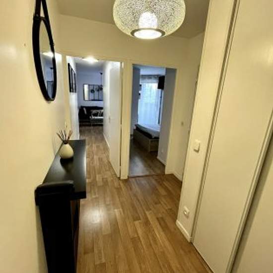 This very attractive, modern flat is located in a quiet residence on the courtyard side, on the 1st floor with a lift. It comprises a fitted kitchen opening onto the living room (with a 2-seater sofa bed), a balcony, a bedroom (with a double bed and dressing room), a bathroom, and a parking space. It is close to all amenities. Services included in rent & charges: - Water - Electricity - Heating - Internet - Parking A security deposit of 990 must be paid, before the keys are handed over, by bank transfer or cheque (cashed).