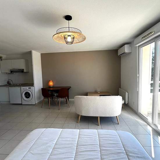 A louer, Arles, dans une résidence sécurisée et de standing avec piscine, nous vous proposons à la location un appartement meublé de 33 m², parfaitement agencé et offrant de belles prestations. Il se compose de : Un hall d’entrée avec rangements intégrés Une pièce de vie lumineuse, comprenant un coin cuisine équipé et un coin nuit astucieusement aménagé, avec rangements Une salle d’eau moderne Des toilettes séparés pour plus de confort Une agréable terrasse privative, idéale pour profiter des beaux jours Ce bien dispose également d’une place...