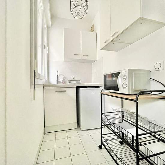 Homizy vous propose : Mairie d’Asnières, Allée Louis Jouvet, au rez-de-chaussée d'un immeuble de 1994 avec gardienne, un studio meublé de 24,68 m² comprenant : Une entrée avec rangements, une séjour équipé d’un canapé-lit et d’un bureau, une kitchenette avec plaques de cuisson, rangements, réfrigérateur et four à micro-ondes, ainsi qu’une salle de bains avec WC. Une cave complète ce bien. Studio en bon état général, au calme (allée sans circulation de véhicules), idéalement situé et proche des commodités et des transports. Chauffage et eau c...