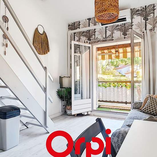 Beautiful furnished studio with a mezzanine of approximately 22 m² in the Engraviers district of Bandol. Orpi Paris Mer offers for rent a beautiful furnished studio with a mezzanine, 21.71 m², in the Engraviers area of Bandol. The apartment, located on the first and top floor, consists of an entrance with a closet, to the left of which are the shower room and toilet. Continuing from the entrance is the living area with a fitted and equipped open kitchen opening onto a lovely balcony. Upstairs, a large mezzanine houses the bedroom and storag...