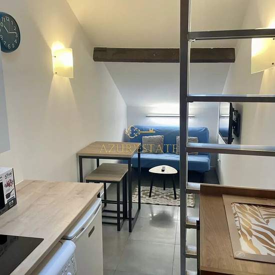 Situated on the border between Monaco and Place de la Crémaillère, on the top floor, air-conditioned, furnished studio with a mezzanine comprising an entrance, a living area with a fully equipped kitchenette, a mezzanine with a bed, and a shower room with a toilet.