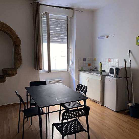 Joli studio meublé de 22.60 m², situé au 1er étage d'un immeuble de 4 étages et comprenant une pièce principale avec un coin cuisine/séjour/chambre (clic-clac) ainsi qu'une salle d'eau avec WC. Chauffage électrique. Double vitrage. Classe énergétique D Loyer charges comprises 370 Euro (les charges s'élèvent à 20 Euro et comprennent une provision pour l'eau, les ordures ménagères et l'électricité des communs). Disponible immédiatement