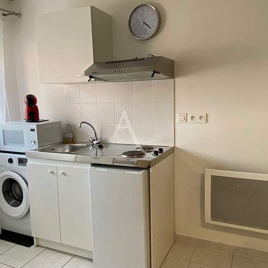 Joli studio meublé, complétement refait à neuf, situé au rez-de-chaussée d'un petit immeuble de 2 étages, comprenant un coin cuisine tout équipé donnant sur un salon/séjour, un coin chambre avec un lit double, une salle d'eau avec WC. Chauffage électrique. Double vitrage. Classe énergétique D. Loyer charges comprises : 370 euros (dont 20 euros de charges pour l'eau, les ordures ménagères et l'électricité des communs). Libre début février 2026