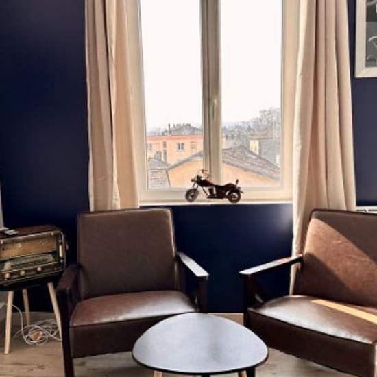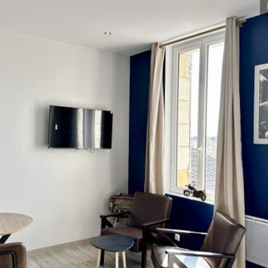 Très beau studio refait à neuf au sein d'un immeuble dans l'hyper centre de Bergerac, avec parking gratuit à quelques minutes à pied et des places de parking gratuites de 19h00 à 9h00 au pied de l'immeuble. Proche de toutes commodités, du Carrefour Market, d'une boulangerie, des bars et restaurants du centre ville. Le studio est tout équipé avec TV, Lit Queen Size de 160, kitchenette avec le nécessaire pour cuisiner et une salle d'eau avec douche, vasque et wc.