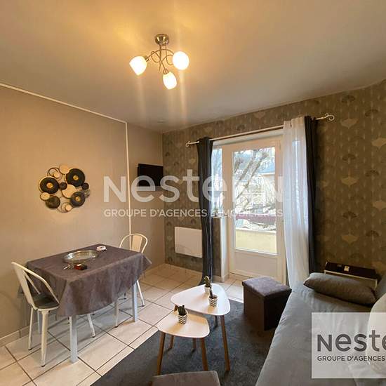 Studio meublé entièrement refait à neuf , avec bonne isolation, dans une résidence sécurisé, avec ascenseur. Situé au premier étage celui-ci vous offre : entrée avec placard de rangement, pièce de vie avec cuisine aménagée et équipée (plaque électrique, micro onde, frigo, vaisselles) ainsi qu'une salle de bain (machine à laver) avec wc. Un petit balconnet ainsi qu'une cave privative vient compléter l'ensemble. Disponible dès maintenant. Loyer : 550 euros par mois charges comprises (eau froide, TOM, charges ascenseur, électricité et entretien...