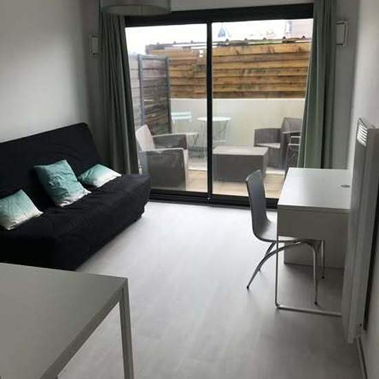 For rent as a furnished lease from December 31, 2025: Furnished studio with terrace 21.20 square meters + terrace 8.60 square meters near Kedge Located on the 1st floor of the residence adjoining Kedge, very quiet neighborhood, building from 2006 with elevator. Living area 17.50 m² Bathroom 3.70 m² Terrace 8.60 m² Sofa bed in excellent condition Desk and office chair Table and chair Equipped kitchen including microwave, electric hotplates and fridge Cutlery and glasses + cooking equipment Storage furniture including a large built-in clos...