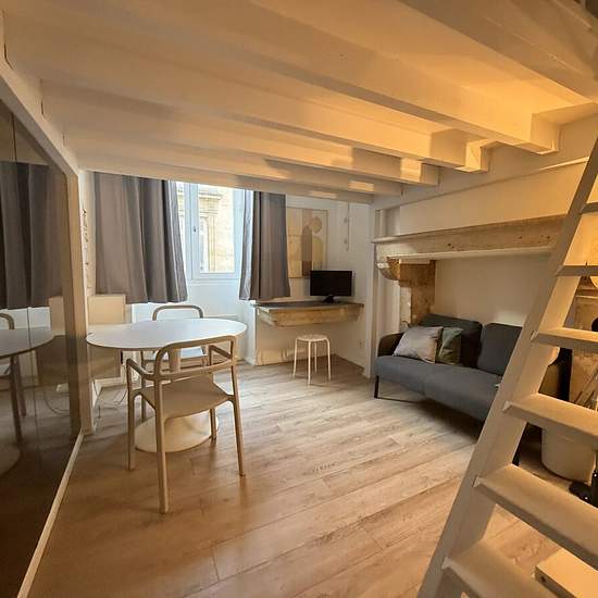 Ce studio lumineux, situé en plein centre de Bordeaux, offre un charme unique. Avec son design moderne et ses finitions élégantes, il vous accueille dans une atmosphère chaleureuse et confortable. Parfait pour les amateurs de ville, il propose également un accès facile aux commodités locales. À l'intérieur, l'espace de vie est optimisé avec un coin repas convivial, une kitchenette équipée et un espace salon confortable. La chambre en mezzanine ajoute une touche d'originalité tout en maximisant l'espace disponible. Les grandes fenêtres laisse...
