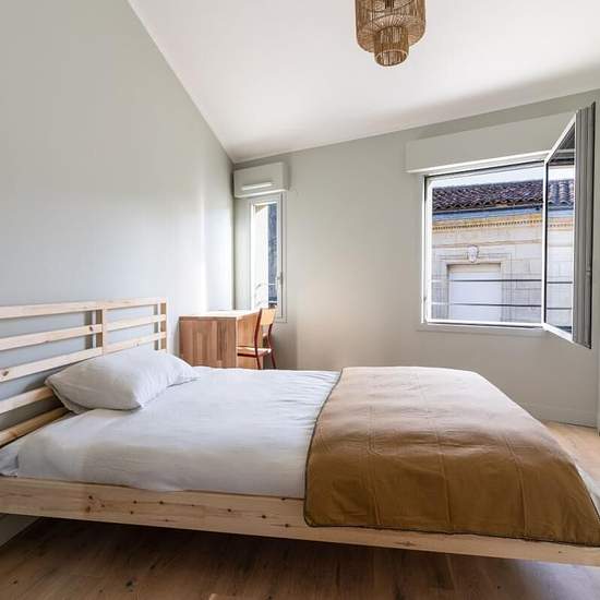 Coliving moderne - Plein centre de Bordeaux Bienvenue dans notre coliving chaleureux et bien pensé, idéal pour vivre une expérience de partage tout en conservant son intimité ! Localisation : Rue saumenude, en hypercentre de Bordeaux proche des Capucins - 9 chambres, toutes avec salle d'eau et WC privatifs - Grande cuisine équipée ouverte sur un salon lumineux, donnant sur une terrasse ensoleillée - 2 espaces de coworking + une kitchenette et un espace détente pour des pauses conviviales - Buanderie équipée à disposition - Parfait pour jeune...