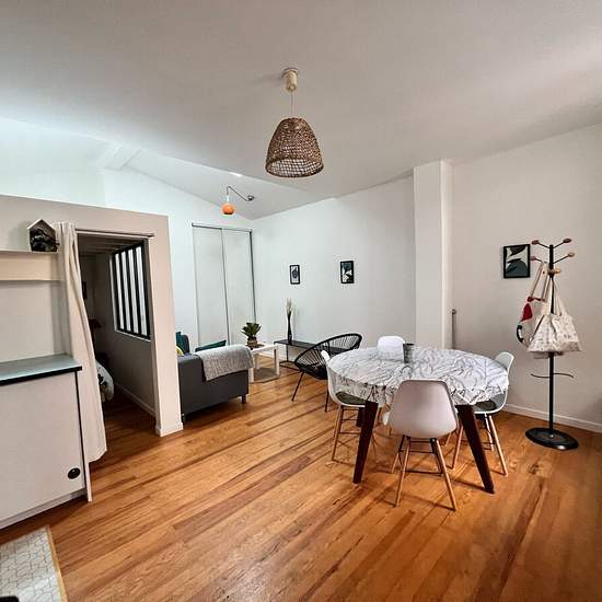 Appartement T1 Meublé à Louer Appartement T1 entièrement meublé d'une une surface habitable d'environ 31,77 m², cet appartement est parfait pour ceux qui recherchent un nid douillet et fonctionnel. L'appartement, situé au premier étage sur deux, offre une pièce à vivre lumineuse et chaleureuse, une cuisine américaine aménagée et équipée, une salle d'eau moderne et un WC séparé. Les ouvertures en PVC/aluminium et les portes à double vitrage garantissent une isolation optimale et un confort acoustique exceptionnel. La pièce à vivre s'ouvre sur...