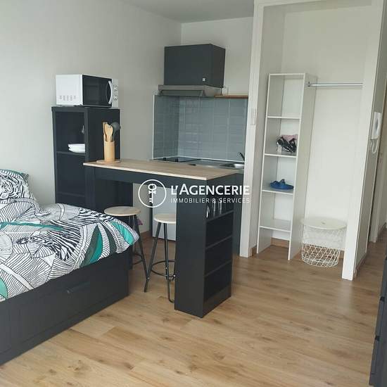Bordeaux Caudéran – Ligne G au pied de l’immeuble Situé au 5ᵉ étage avec ascenseur, côté arrière de l’immeuble, ce studio meublé de 18 m² propose un espace de vie fonctionnel et entièrement équipé.Il se compose d’une pièce principale avec coin cuisine aménagé et équipé, ainsi que d’une salle d’eau avec toilettes. Un parking privatif extérieur et un cellier en sous-sol viennent compléter ce bien. DPE en cours d’actualisation suite à des travaux récents. Disponible le 25 janvier 2026. Honoraires de 240 € TTC à la charge du locataire comprenant...