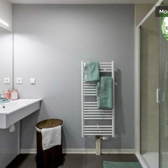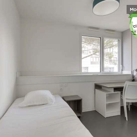 The residence proposes you this studio 1 person with 1 simple bed. The accommodation is functional and equipped with : - 1 single bed (bed linen provided) - Bathroom with shower, towel dryer - Kitchenette equipped with dishes and small appliances included (Microwave / 2 burners / fridge) - Work space with desk and armchair, Wifi included, flat screen TV The residence offers many services such as a gym with a wellness area (sauna) wellness (sauna), a 2-wheel room, a reception area. But also a laundry (with token system). Cleaning at the end o...