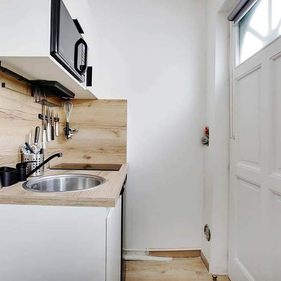 Le logement Ce logement est disponible pour un bail mobilité UNIQUEMENT. Le bail mobilité est un type de bail de location meublée de courte durée. Il vise à faciliter la mobilité des locataires, et notamment ceux amenés à déménager pour des raisons professionnelles (mutation ou mission), les étudiants, les jeunes en formation, en alternance ou en stage. Il s'agit d'un studio de 12m² situé au rez-de-chaussée. Il se compose de: - Une kitchenette ouverte équipée et fonctionnelle : frigidaire, plaque de cuisson, machine à café, grille-pain, boui...