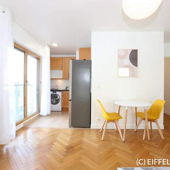 Très bel appartement meublé refait à neuf situé avenue Pierre Lefaucheux en bordure de Seine. A proximité du métro Pont de Sèvres (ligne 9). Au 4ème étage avec ascenseur dans un immeuble récent. Appartement entièrement repeint, ameublement neuf et contemporain. D’une surface de 43m2, l’appartement se compose d’une entrée avec rangements, d’un séjour en double exposition avec balcon (orienté Plein Ouest), d’une coin cuisine équipée (électroménager neuf), d’une chambre avec rangements et d’une salle de bain avec WC. Appartement lumineux et ...