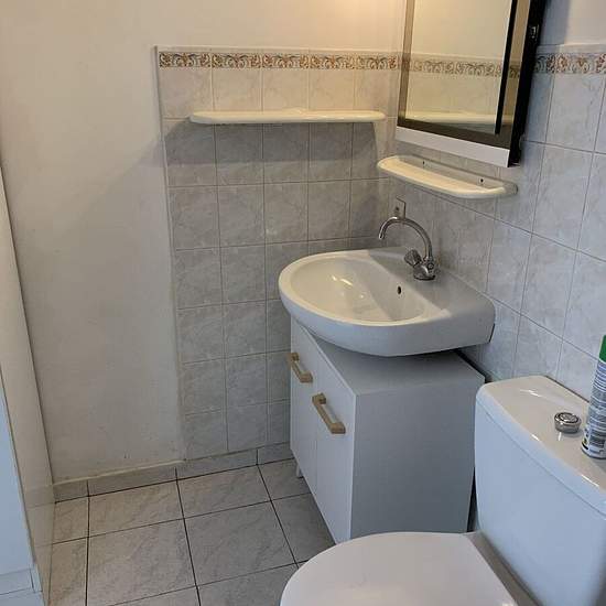 Beau studio en plein centre ville a pieds de toutes les commodites situe au rez de chaussee avec belle terrasse commune comprenant belle piece de vie carrelee avec cuisine americaine amenagee salle de douches avec wc. Tres propre ! Libre le 5 mars prochain !